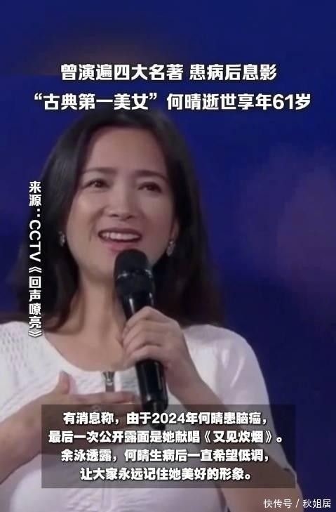 12日,多家权威媒体发布消息,著名演员何晴于北京逝世,终岁。